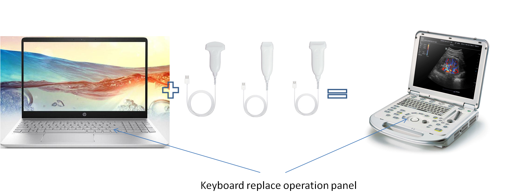 一个探头和一台笔记本电脑,就是一台完整的彩超,图像和功能完全跟传统彩超一样,只要您有笔记本电脑,您就能工作,让您的工作变得